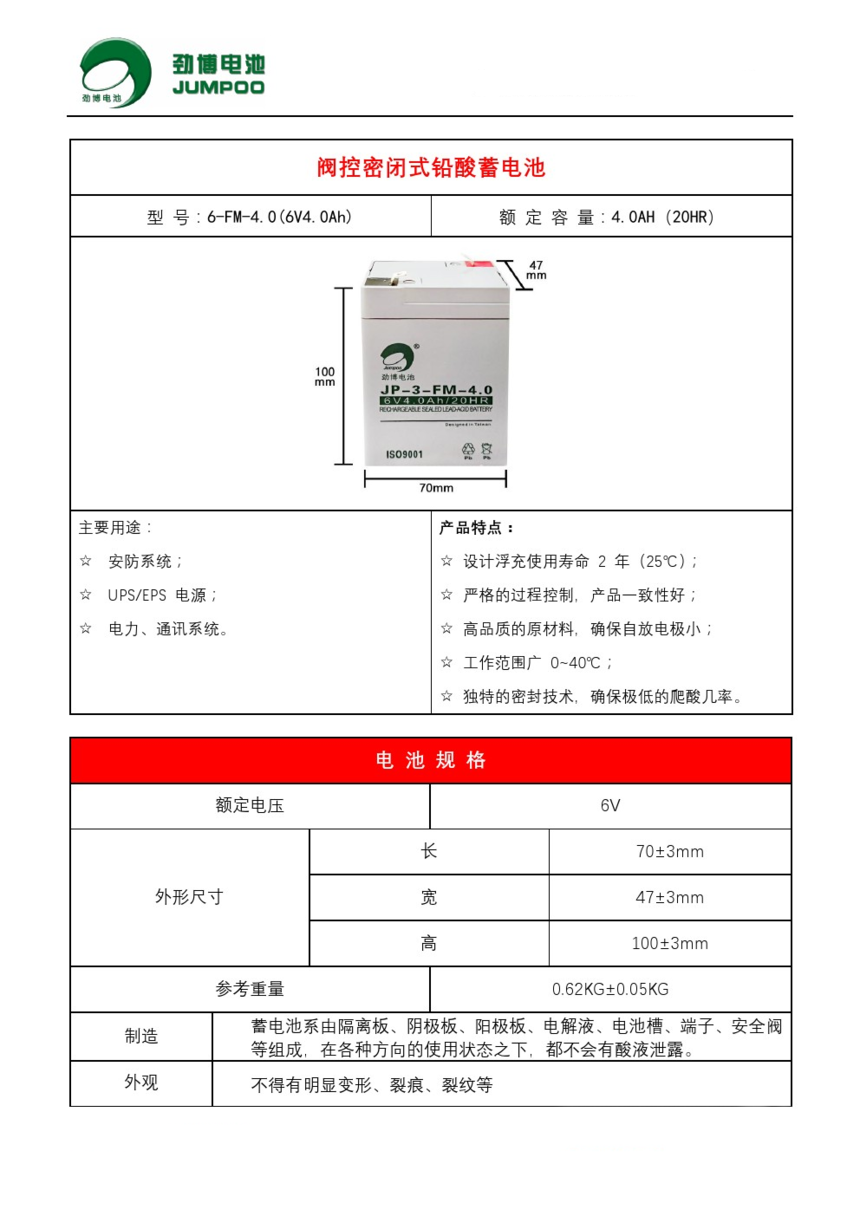 劲博电池6V10AH