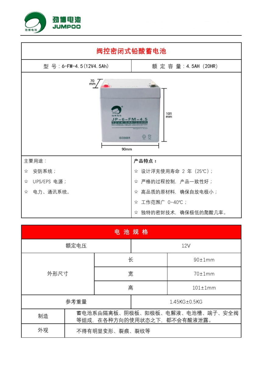 劲博电池12V4.5AH