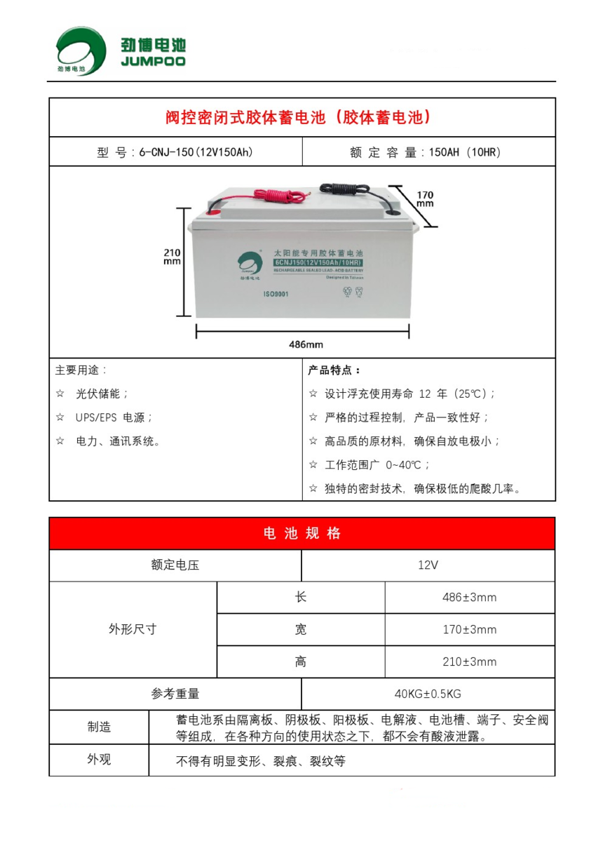 劲博储能电池12V150AH